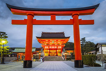 Sake is a Japanese rice wine made by fermenting rice that has been polished to remove the bran. Next visit Fushimi Inari Shrine dedicated to Inari, the Shinto God of Rice. The magical, seemingly unending path of over 5000 vibrant orange torii gates that wind through the hills behind Fushimi Inari-taisha Shrine makes it one of the most popular shrines in Japan.
